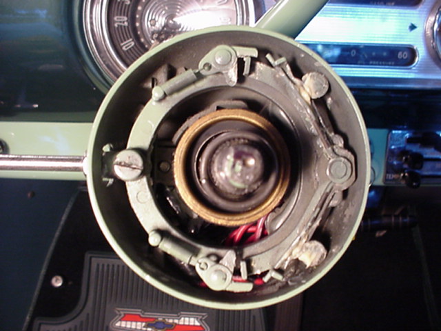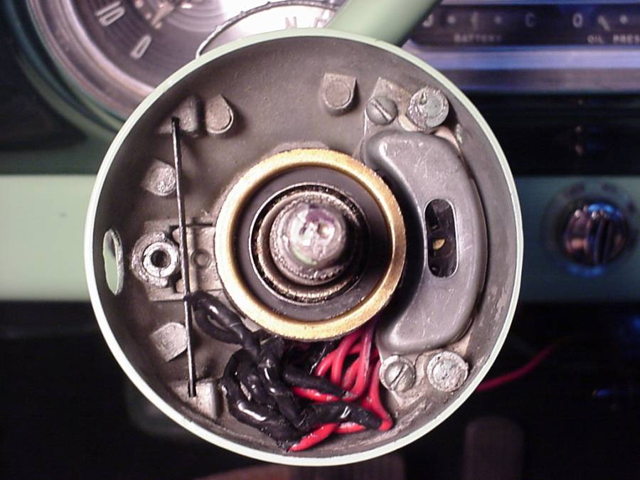 Remove the "Horn Contact Plate". NOTICE how you remove it. There is a bevel to the metal plate. When laying in the steering wheel, the bevel arches upwards. |