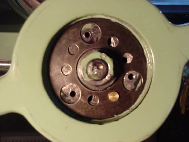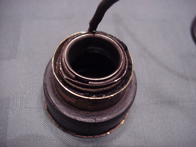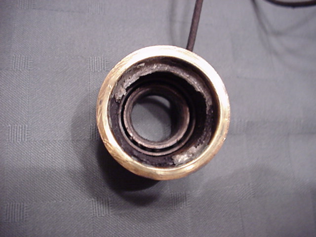 View of the back. Here is where you can barely see the old rubber dried up between the brass inner and our collar. This causes the short. |