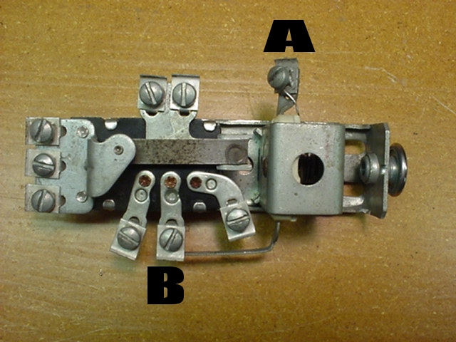 Headlight switch. Terminals A & B are the connections for the dimmer control. |