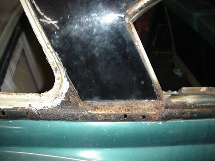 Top meets body. This was the worst rust on the car. |
